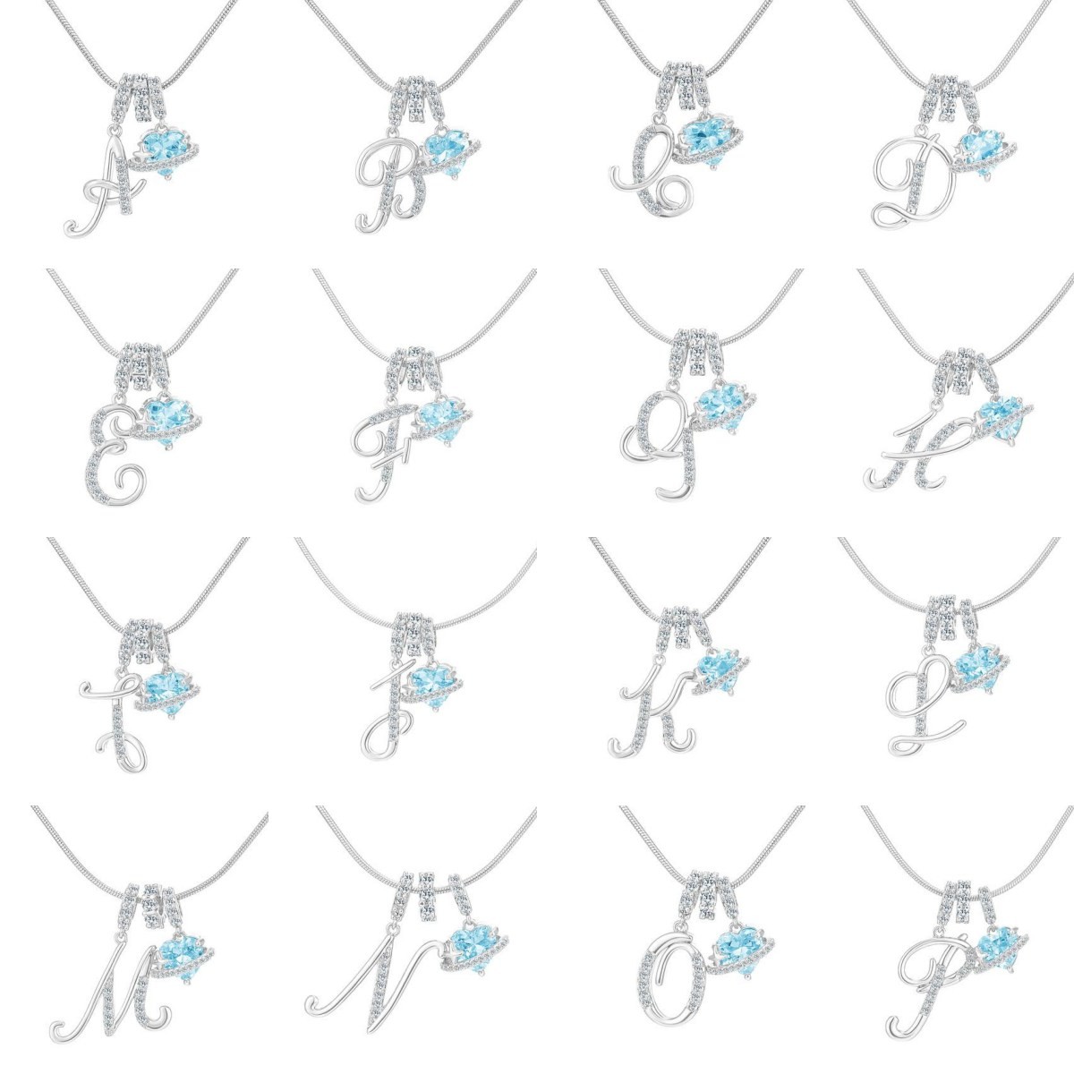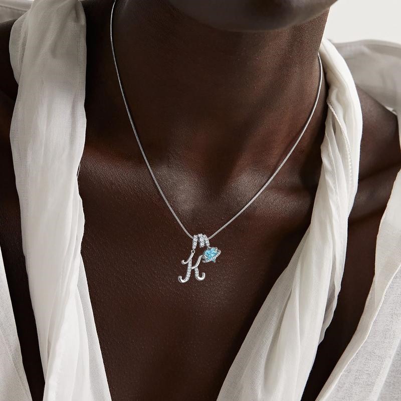 Unique 925 Sterling Silver Art Design Initial Letter Charm Necklace with Personalized Heart Birthstone Gift for Her